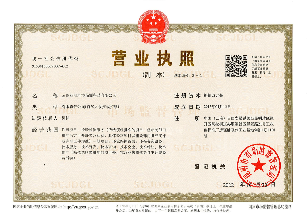 云南省社會化環(huán)境監(jiān)測機構(gòu)乙級資質(zhì)